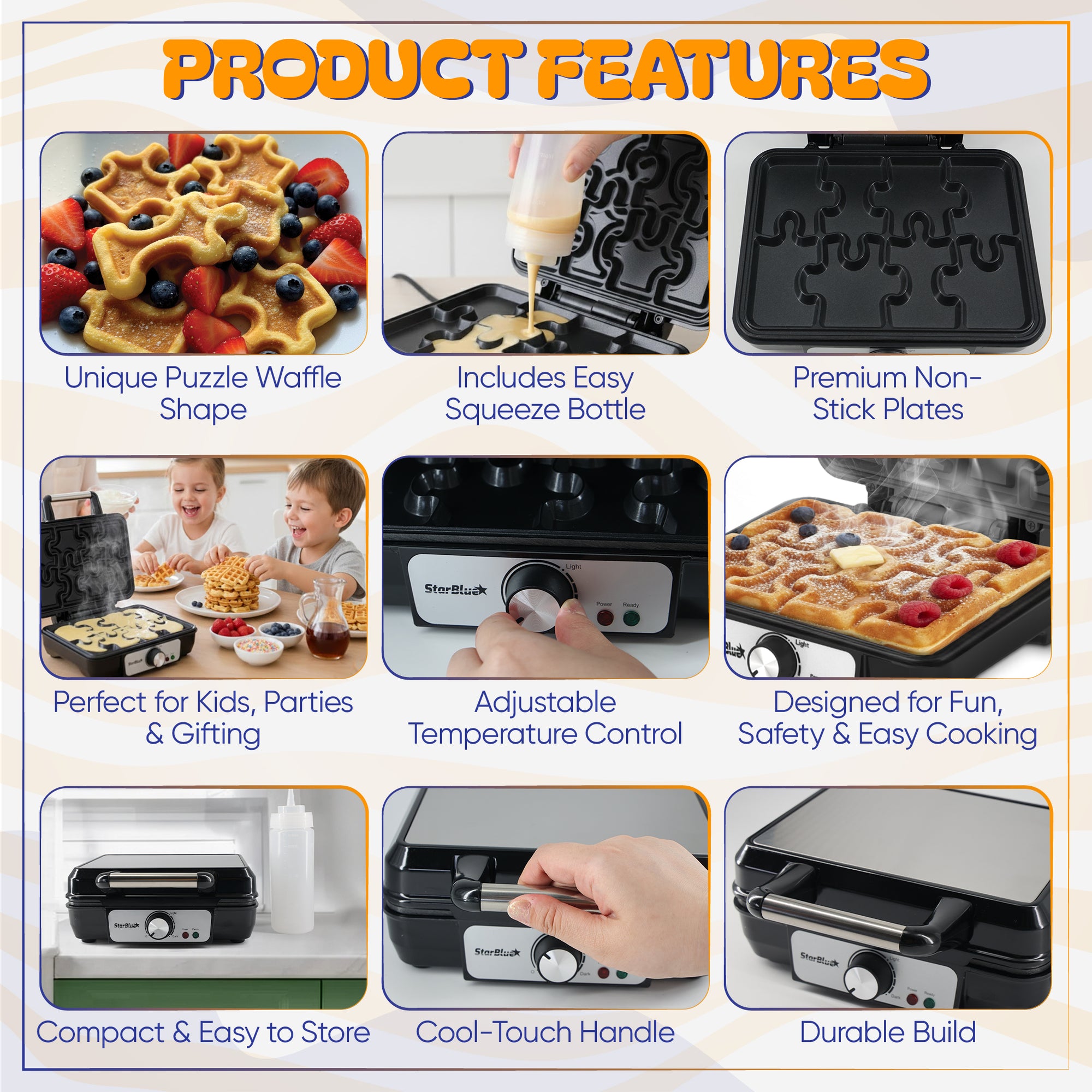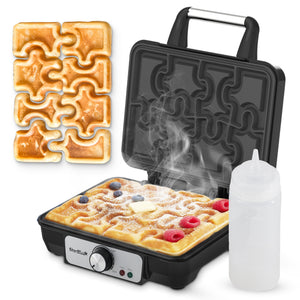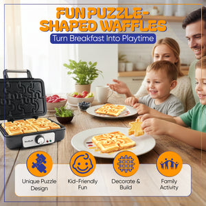 - FUN, PLAYFUL PUZZLE WAFFLES FOR KIDS - Create adorable puzzle-shaped waffles that inspire imagination and hands-on fun. Kids will love building, decorating, and enjoying their own waffle pieces, turning breakfast into a joyful family activity.