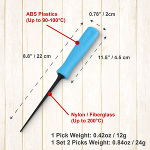 - ✅ HIGH-QUALITY MATERIAL - Made with high-quality and durable material that promises long term usage if used carefully. The handle area is made with ABS plastic that resists heat perfectly and you can rotate the octopus’s balls freely. The picks material consists of nylon and fiberglass that are best for using on non-stick Takoyaki maker as it does not scratch the non-stick coating of the Takoyaki pan.