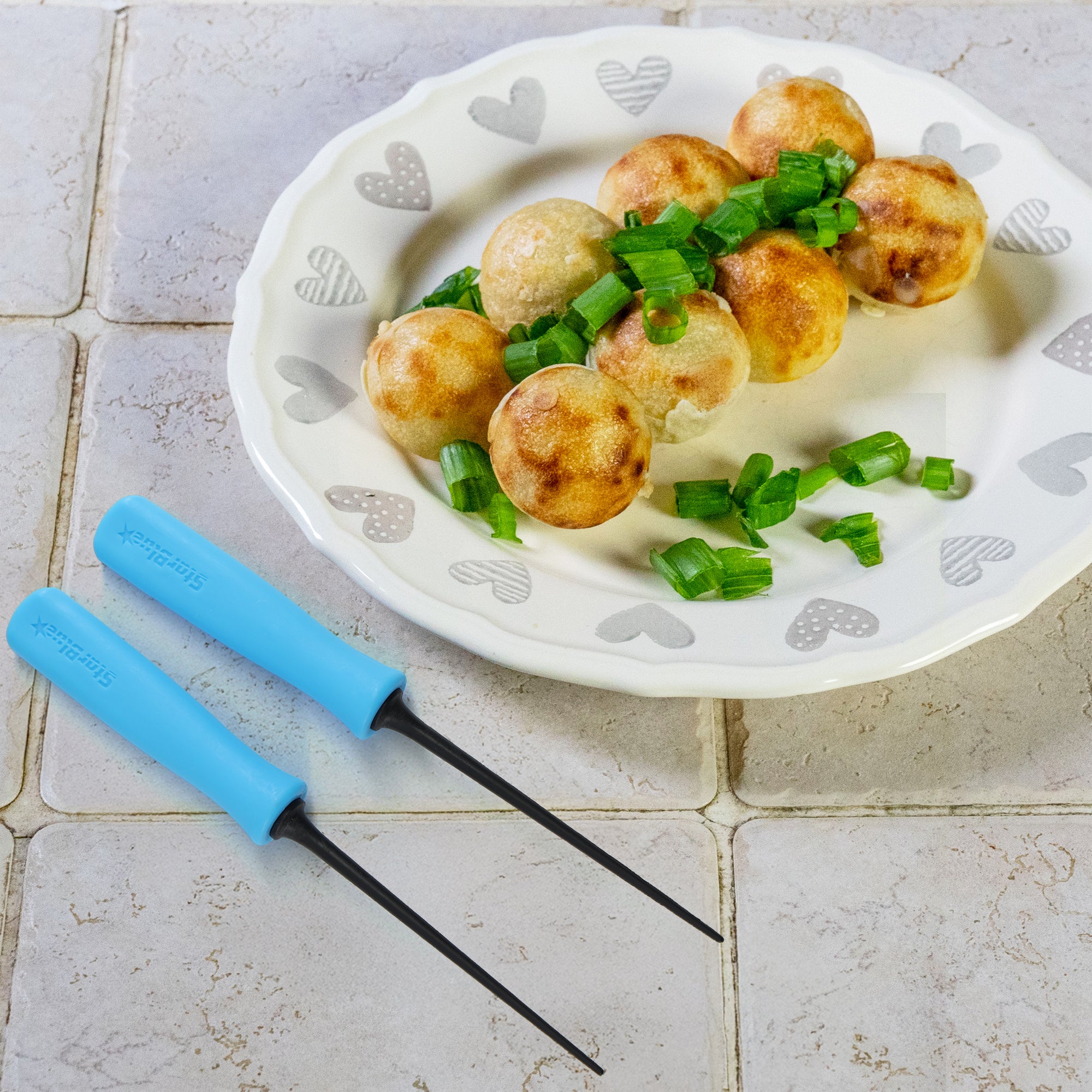 - ✅ ELEGANT DESIGN - StarBlue Takoyaki picks are best used with Takoyaki machines to rotate Takoyaki balls to make sure that the balls are perfectly cooked from each side and you have an incredible flavor and tenderness. The elegant combination of light blue handle with black picks for Takoyaki seems complementing to eyes.